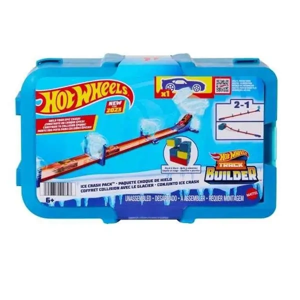 Zawartość: 1 zestaw Hot Wheels(R) Track Builder Lodowy tor i 1 pojazd Hot Wheels(R) w skali 1:64.