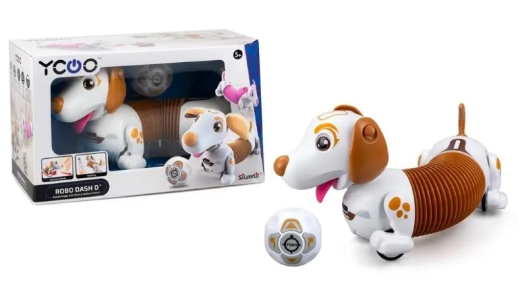 Kolejna odsłona zdalnie sterowanego psiaka do zadań specjalnych! Robo Dash D to sprytny, czworonożny robot, który reaguje na dotyk. Zabawka porusza się we wszystkich kierunkach, a nawet potrafi wykrywać przeszkody. Dzięki funkcji śledzenia, psiak może podążać za pilotem. Kiedy przeturlasz pilot po podłodze, piesek pójdzie w tym samym kierunku, kiedy zaczniesz przemieszczać się z pilotem w dłoni, Robo Dash podąży za Tobą!