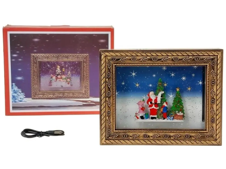 obrazek świąteczny 24x19x4,5cm ze światłem i dźwiękiem, kabel USB, z możliwością zawieszenia; BOX