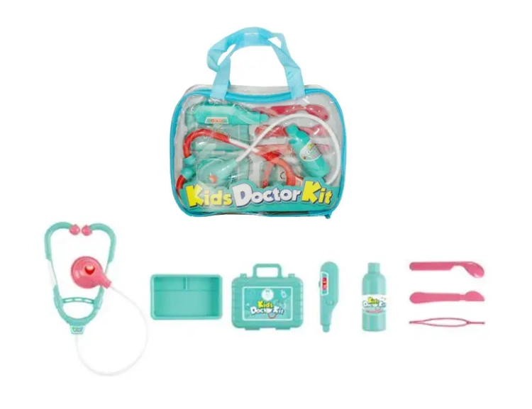 Zestaw lekarski dla dzieci. W zestawie znajduje się : stetoskop, termometr, pęseta, nóż lekarski, leki. Produkt zapakowany w przezroczyste opakowanie przypominajace walizkę. Zabawka przeznaczona dla dzieci od 3 lat. Podane wymiary stanowią wymiar opakowania.
