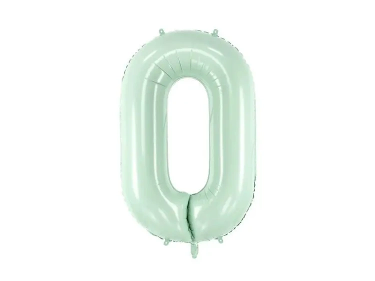 Balon foliowy Cyfra ''0'' w kolorze zielonym, rozmiar przed napompowaniem ok. 86 cm (34''), rozmiar po napompowaniu ok. 72 cm (28''). Do napompowania powietrzem i helem. Zestaw zawiera słomkę