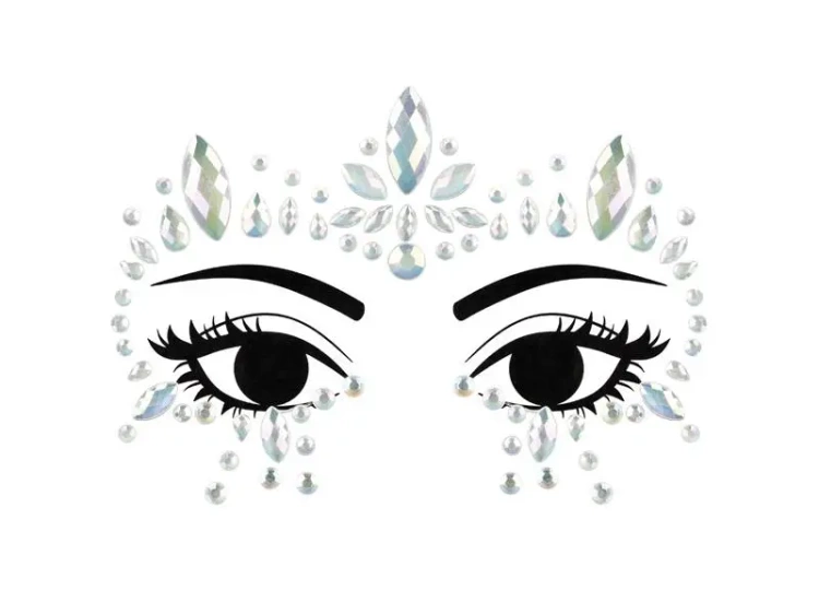 "Świecące w ciemności, samoprzylene kryształki do dekoracji twarzy, rozmiar zestawu ok. 15x9 cm. Produkt jednorazowego użytku. Kryształki łatwo przykleić do skóry twarzy dzięki samoprzylepnej warstwie. Nie nakładać na wrażliwą skórę lub oczy. Skład: akryl - 98%, PVC - 2%."
