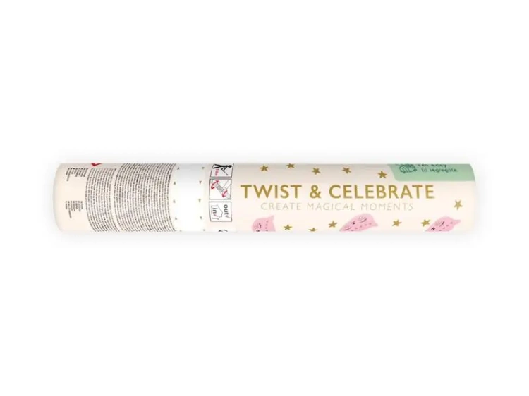 Tuba strzelająca metalicznymi gwiazdkami w kształcie kotków, długość 20 centymetrów.