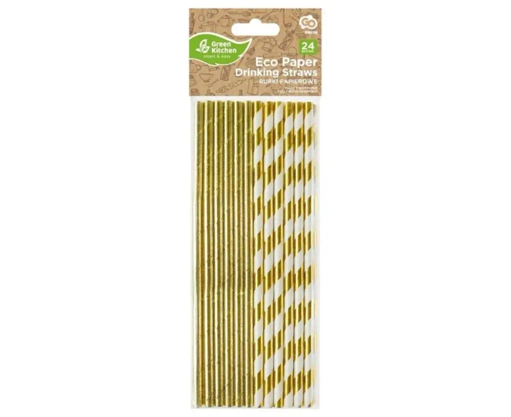 Słomki papierowe złote dwa wzory 24szt - Godan