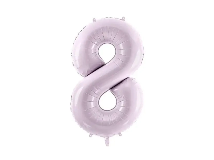 Balon foliowy Cyfra ''8'' w kolorze fioletowym, rozmiar przed napompowaniem ok. 86 cm (34''), rozmiar po napompowaniu ok. 72 cm (28''). Do napompowania powietrzem i helem. Zestaw zawiera słomkę