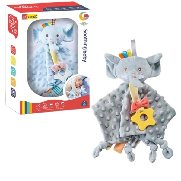 Zabawka sensoryczna w kształcie słonika to doskonały wybór dla niemowląt od pierwszych dni życia. Słonik został wykonany z miękkiej tkaniny, dzięki czemu jest bezpieczny i miły w dotyku. Zabawka posiada szeleszczące uszka oraz teksturowane wypustki, które pobudzają zmysły dziecka i wspierają jego rozwój sensoryczny. Przyczepiony do słonika gryzak łagodzi ból dziąseł podczas ząbkowania. Zabawka jest lekka i wygodna do zabrania na spacer. Wysokość zabawki: 30 cm Wymiary opakowania: 18 x 7 x 27 cm Wiek minimalny dziecka: od pierwszego dnia życia