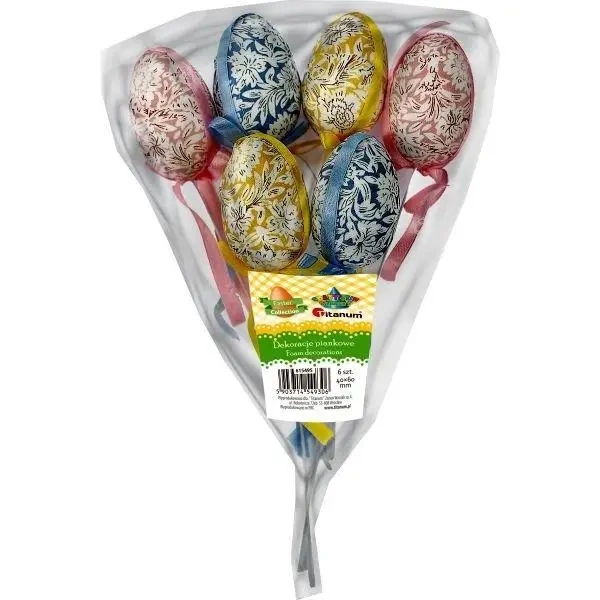 Jajka styropianowe 38x58mm 3 kolory 6szt - Titanum