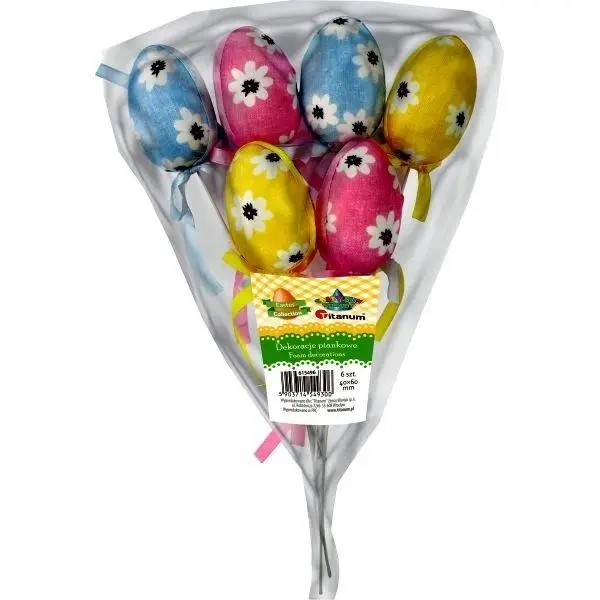 Jajka styropianowe 40x60mm 3 kolory 6szt - Titanum