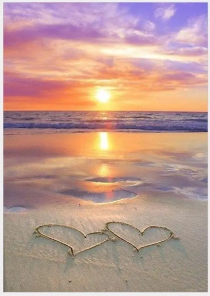 Gotowy obraz zachwyci swoim urokiem i romantyzmem, dzięki detalom takim jak serca na piasku.