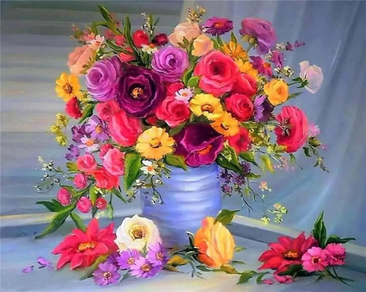 Malowanie po numerach to wyjątkowa forma relaksu, która łączy kreatywność z precyzją. Oferowany zestaw o wymiarach 40x50 cm pozwala na stworzenie pięknego bukietu, idealnego do zawieszenia w każdym pomieszczeniu.