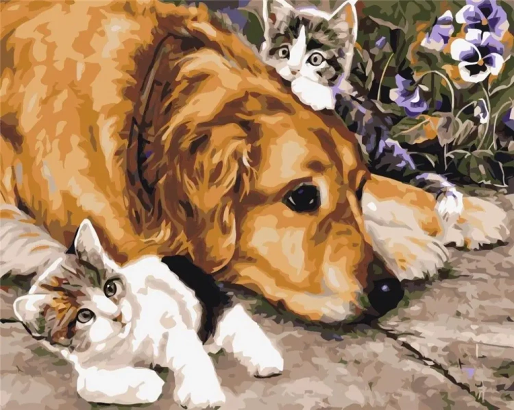Przedstawiamy zestaw do malowania po numerach w rozmiarze 30x40 cm, który przedstawia scenę z psem i kotem. Dzięki niemu możesz poczuć się jak prawdziwy artysta, tworząc piękne dzieło w zaciszu własnego domu.