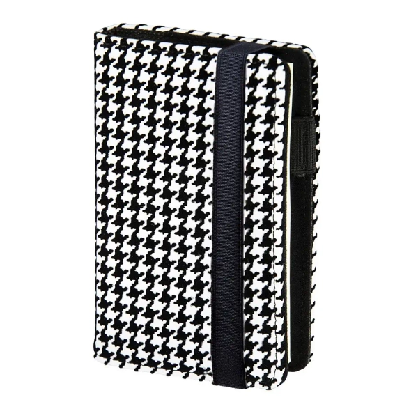 Notes wyróżnia się eleganckim czarno-białym wzorem w pepitkę. Wnętrze zdobi czarny zamsz, co podkreśla jego stylowy wygląd. Seria Modena została wyposażona w praktyczne zapięcie na gumkę.