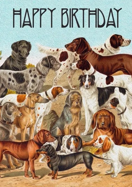 Karnet B6 z kopertą Urodziny Psy, w środku bez tekstu, wyprodukowany w Wielkiej Brytanii.