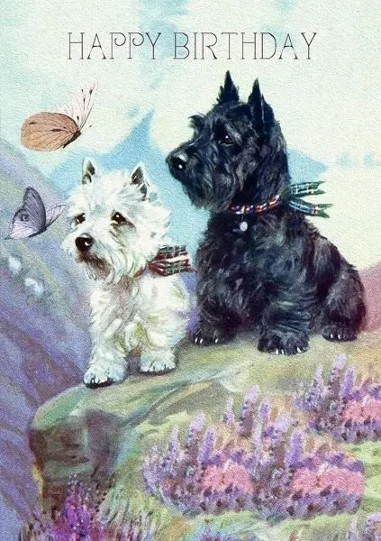 Karnet B6 z kopertą Urodziny 2 Szkockie Teriery - Madame Treacle