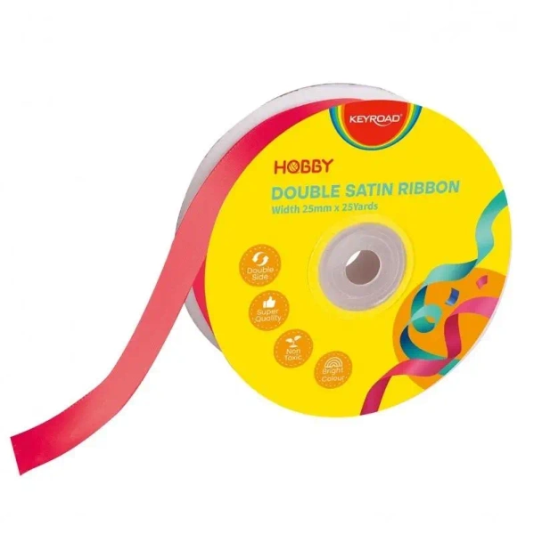 Wstążka podwójna satynowa czerwona 25mmx22,86m - Keyroad