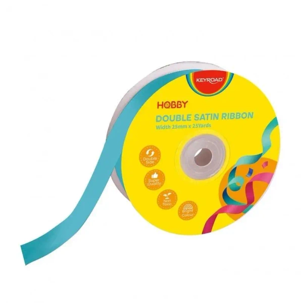 Wstążka podwójna satynowa niebieska 25mmx22,86m - Keyroad