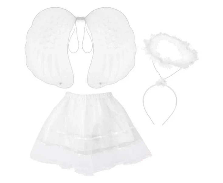- spódniczka z tasiemkami, skrzydła, aureolka