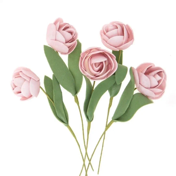 Przepiękne różowe różyczki zamocowane na delikatnych gałązkach, wykonane z cienkiej pianki, z łodyżkami zakończonymi przewodem. Doskonałe do zdobienia projektów przez cały rok, a także do ślubnych i komunijnych dekoracji.