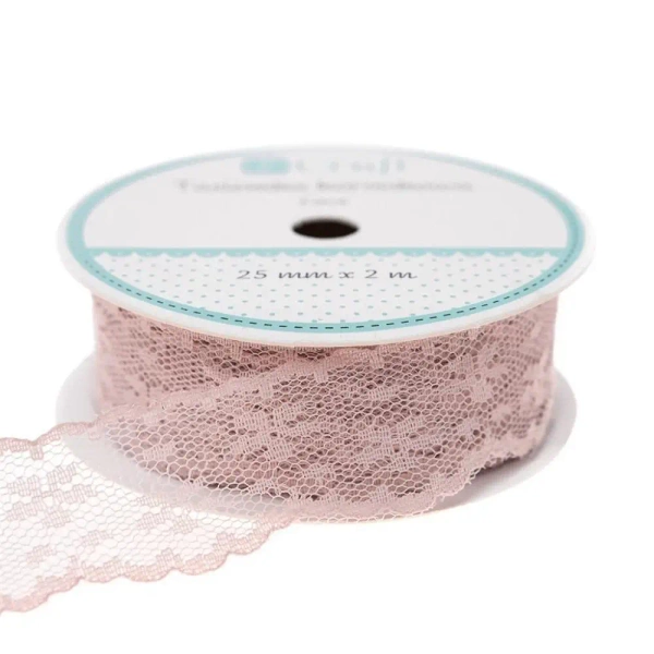 Tasiemka koronkowa pudrowo-rózowa 2,5cmx2m - Dalprint dpCraft