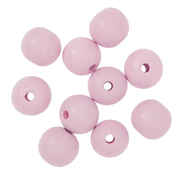 Koraliki drewniane, kulki w kolorze liliowym są doskonałe do tworzenia rozmaitych prac kreatywnych.