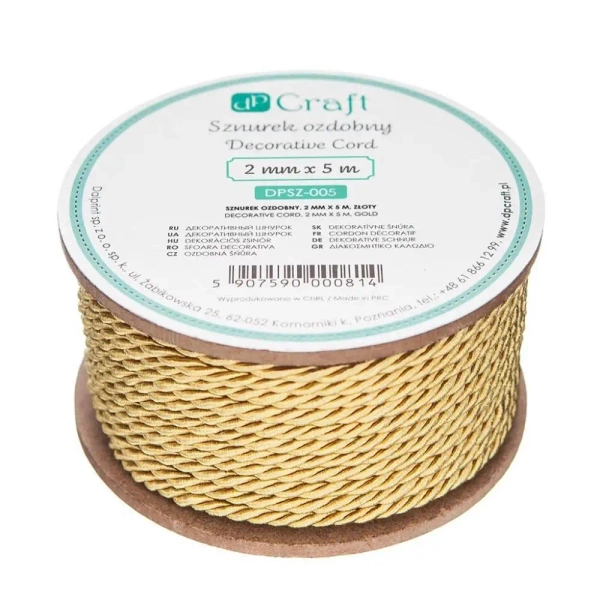 Sznurek ozdobny 2mmx5m złoty - Dalprint dpCraft