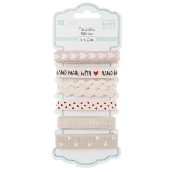Wyrażające "handmade with love", te tasiemki doskonale sprawdzą się przy tworzeniu kreatywnych projektów DIY. Nadają się idealnie do ozdabiania kraftowych opakowań oraz papierów, będąc znakomitym elementem dekoracyjnym przy pakowaniu prezentów.