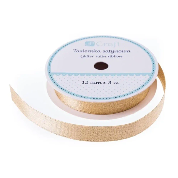Przedstawiamy satynową tasiemkę brokatową, która zachwyca swoim złotym blaskiem, cudownie połyskującym w promieniach światła.