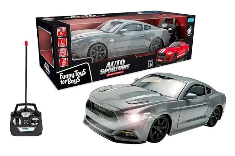 W zestawie: auto 35 cm., Polot, funkcje: pełen zakres jazdy, działające przednie i tylne światła, ustawianie zbieżności kół, gumowe opony, wym. Opk: 46 x 20 x 15 cm., Baterie auto 4 x aa 1,5v, pilot 2 x aa 1,5 brak w zestawie, 6+