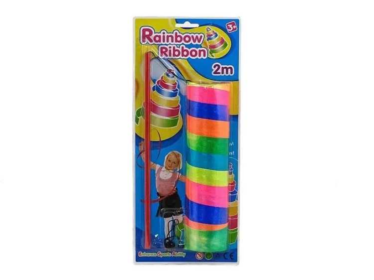 tęczowa wstążka dł.2m, do ćwiczeń gimnastycznych, pałeczka dł.30cm; 16,5x38x3,5cm, B/C