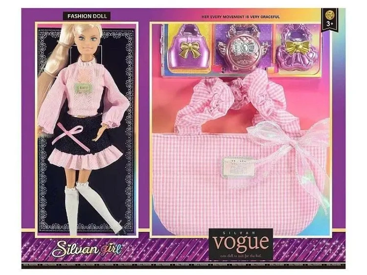 lalka 29cm z zestawem torebek; 41x33x5,5cm, W/B