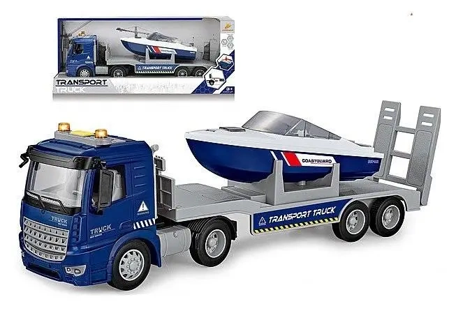 auto z lawetą i motorówką, światło, dźwięk; 41,5x18x10,5cm, W/B