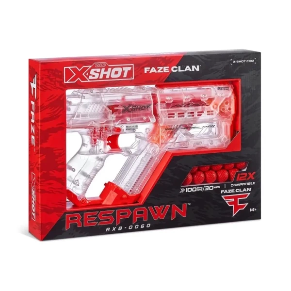 Poczuj moc e-sportowej akcji z najnowszymi wyrzutniami X-Shot we współpracy z FaZe Clan. Te fantastyczne wyrzutnie na kulki przeniosą zabawę z strzelanie do celów na zupełnie nowy poziom. Łączą gamingowy świat e-sportu oraz światową jakość wyrzutni X-Shot. Wejdź do gry w zupełnie nowym stylu przeźroczystych, fajowych blasterów. Zachwyć się mocą wyrzutni, która ciska amunicją w formie specjalnych kulek z prędkością do 30 m na sekundę!