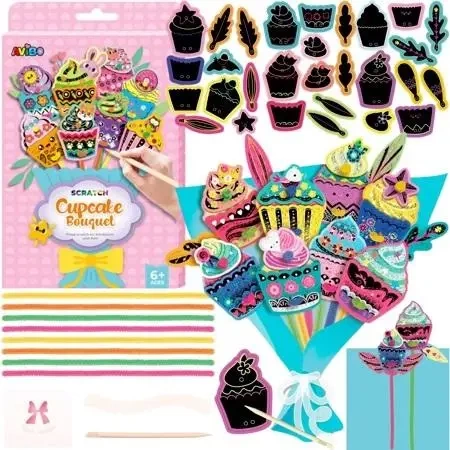 Wydrapywanie wzorów: Za pomocą dołączonego narzędzia do rysowania, dzieci mogą wydrapywać fantazyjne wzory dla babeczek. Pod warstwą do zdrapywania kryją się piękne kolory, które dodają uroku każdej babeczce.