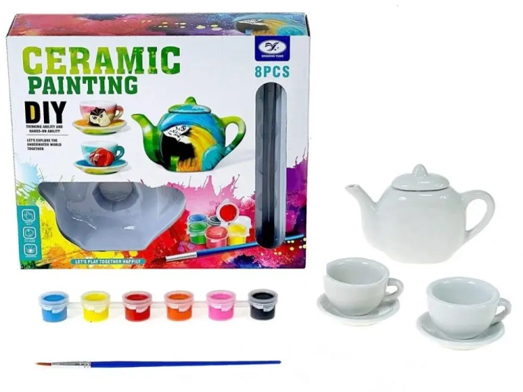 Zestaw do herbaty, ceramiczny, do malowania, z farbami; 22,5x19x6cm
