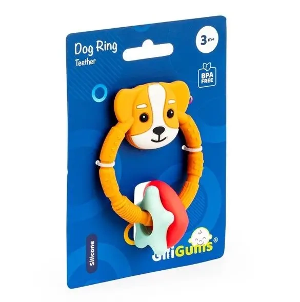 Gryzaczek w kształcie obręczy z pieskiem stanie się nieodłącznym towarzyszem ząbkującego maluszka. Na obręczy znajdują się zróżnicowane wypustki, a poza psią główką, gryzak zdobią jeszcze dwa ruchome elementy serduszko i gwiazdka. Podobnie jak obręcz z pieskiem, są one mięciutkie i także mogą służyć za gryzak. Uroczy wygląd zabawki z pewnością przypadnie do gustu bobasowi, czyniąc ją nie tylko praktyczną pomocą w ząbkowaniu, ale też stylowym dodatkiem, z którego korzystać można zarówno w domu, jak i na wycieczce.