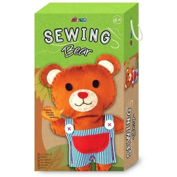 Avenir Sewing to niepowtarzalna kolekcja pluszowych maskotek, które dzieci mogą uszyć samodzielnie. Miś z serii ma około 23 cm wysokości i jest bardzo miękki w dotyku, dzięki wysokiej jakości filcowi. W pakiecie znajduje się wszystko, czego potrzeba, aby stworzyć swoją własną maskotkę: specjalnie przygotowany materiał, wypełnienie, nici (mulina) oraz plastikowa, bezpieczna igła.Maskotka idealna dla najmłodszych rączek