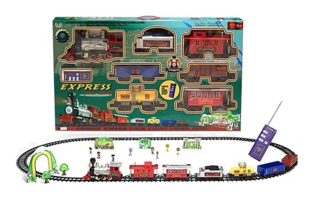 Kolejka na radio, światło, dźwięk, 6 wagonów; 90x54x13cm,