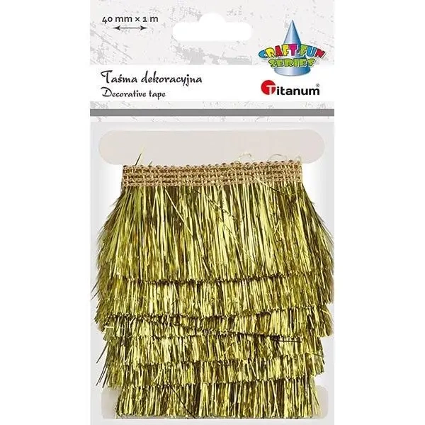 Taśma z frędzlami plastikowymi 40mm 1m złota - Titanum