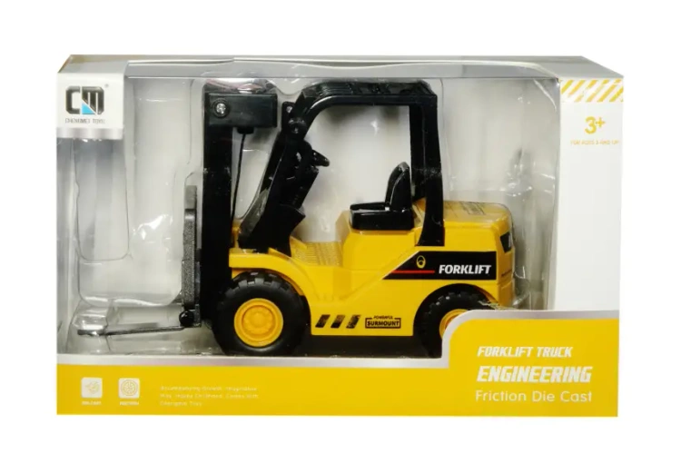 Plastikowy-metalowy wózek widłowy z ruchomymi elementami. Wózek podnosi widły góra-dół. Pojazd działa na napęd friction. Produkt dla dzieci od 3 lat. Podane wymiary są wymiarami opakowania.