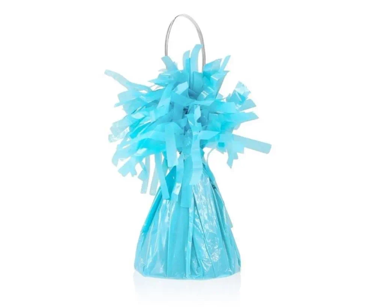 Ciężarek do balonów, OBCIĄŻNIK, foliowy pastelowy niebieski, 145 g / 1 szt. Wysokość: 12 cm Waga: 145 g Kolor: pastelowy niebieski Producent: Godan S.A. Ciężarek do balonów w kształcie stożka, niebieski. Obciążnik znajduje się w dekoracyjnej folii o pastelowym odcieniu, dzięki czemu będzie pasować do innych dekoracji oraz balonów w tym odcieniu. Błękitny obciążnik do balonów to idealny wybór przy tworzeniu dekoracji balonowych na ślub, wesele, urodziny i wiele innych okazji. Ciężarek do balonów jest przede wszystkim przeznaczony do balonów na hel, ale jego zastosowanie może być dużo większe.