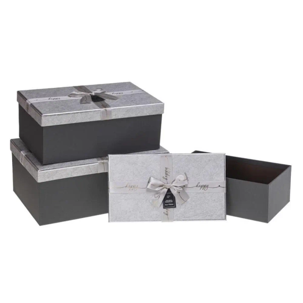 Pudełko prezentowe z kokardą 3szt srebrny ROZETTE
