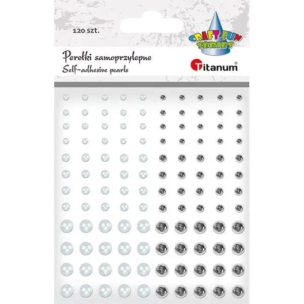 Perełki samoprzylepne okrągłe 120szt białe srebrne - Titanum
