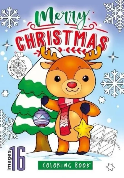 Kolorowanka dla dzieci. Na każdym z 16 obrazków znajduje się obrazek z motywem Bożego Narodzenia, który tylko czeka żeby nabrać kolorów. Wyprodukowana na Ukrainie.