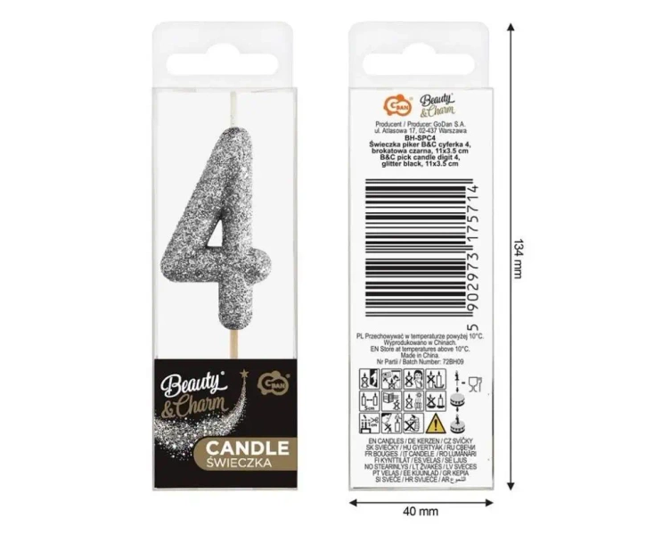 Świeczka piker 4 czarna brokatowa 11x3.5 cm - Godan