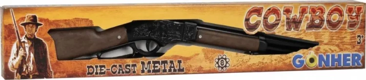 Strzelba kowbojska metalowa na 8 naboi. Wymiary: 68,5x16cm. Wiek: 3+. Szt./karton: 24