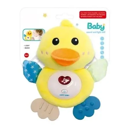 Kaczuszka wyposażona jest w delikatne światło, które dodaje zabawce uroku oraz tworzy przyjemną atmosferę podczas układania do snu. To subtelne światło działa kojąco na maluszka, tworząc warunki do spokojnego zasypiania. Wnętrze kaczki skrywa pozytywkę z łagodnymi i uspokajającymi dźwiękami, pomagającymi dziecku spokojnie zasnąć. Pozytywka jest łatwo zdejmowana, co pozwala dostosować zabawkę do indywidualnych potrzeb.