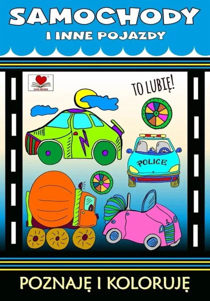 Przyjazna kolorowanka z ciekawostkami na temat pojazdów. Książeczka dla wielbicieli samochodów, cystern, wyścigówek, ciężarówek, motorów. Zabawa w czytanie i kolorowanie ilustracji. Format B5, oprawa miękka, stron 20