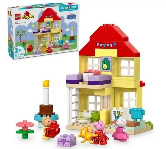 Domek Peppy dla dwulatków i starszych dzieci dzięki zestawowi LEGO(R) DUPLO(R) Urodzinowy domek Peppy dzieci w wieku przedszkolnym i mali fani serialu wezmą udział w urodzinach bohaterki