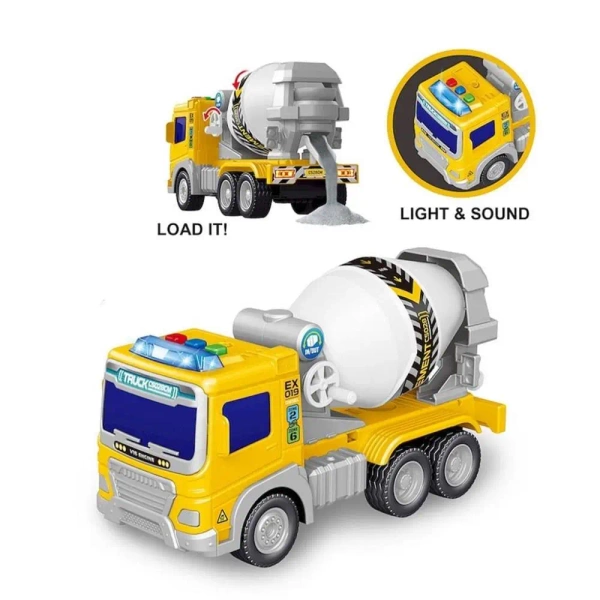 Pojazd ma autentyczne detale, takie jak wirujący bęben betoniarki oraz ruchome koła, dzięki którym można łatwo jeździć po powierzchni. Dzięki dźwigni można włożyć materiały budowlane do betoniarki i mieszać je, co dodaje dodatkowego realizmu zabawie.