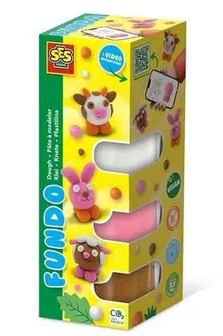 Ciasto FunDo - Zwierzęta hodowlane to wyjątkowy zestaw, który zachwyci różnorodnością kolorów: różu, bieli, brązu i pomarańczy. Umożliwia on stworzenie trzech uroczych figurek: krowy, owcy i królika, dzięki czemu interaktywna zabawa staje się niezwykle angażująca.